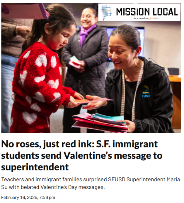 After we held a community meeting with hundreds of people in late January, and followed up with a delivery of Valentine’s cards asking her not to break our hearts, SFUSD Superintendent Maria Su agreed to meet with us on Friday, March 6. But at that meeting, she ignored our pleas to pause the harmful cuts for one year to give us time to work together and create stability for our children.
