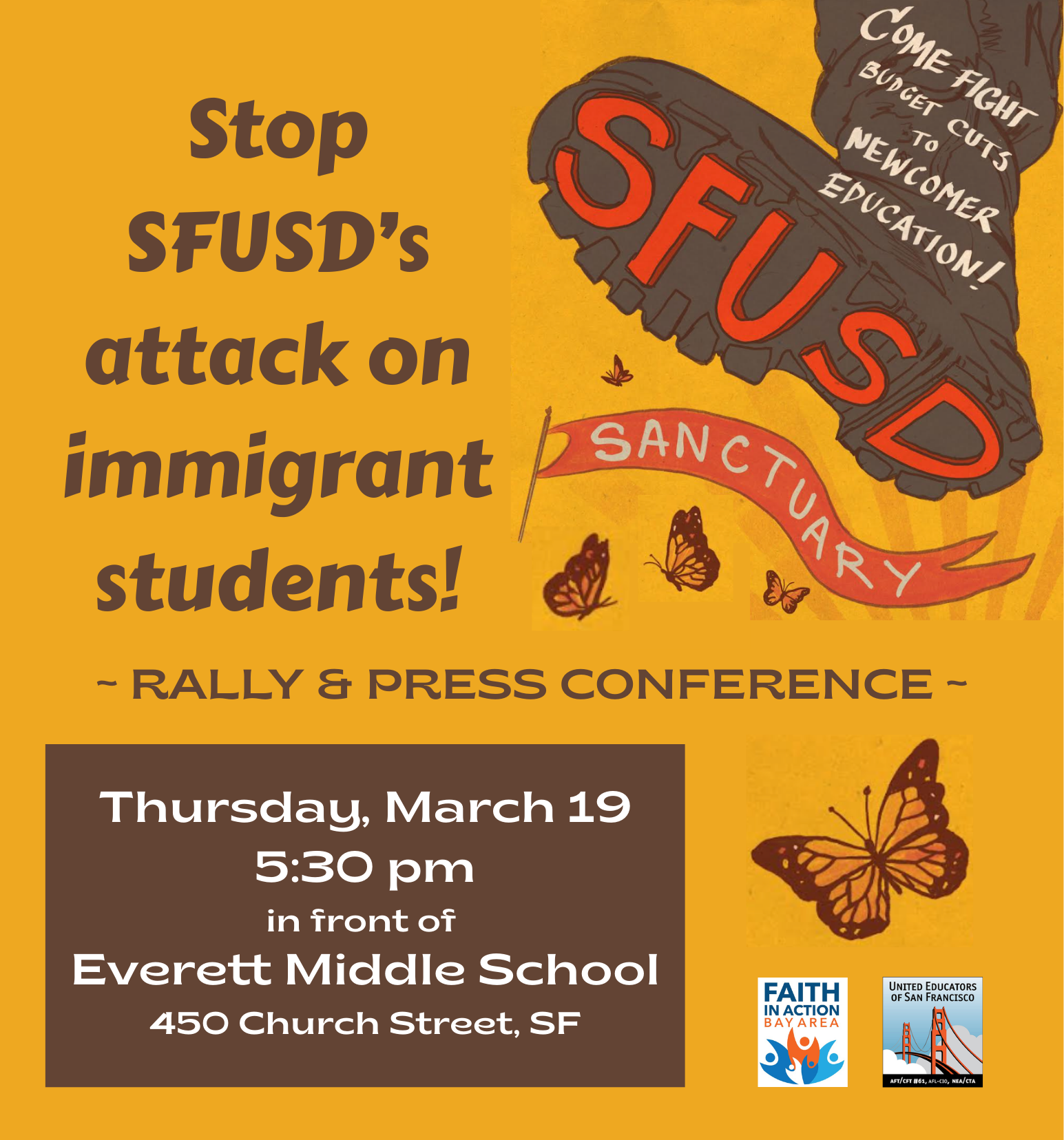 Immigrants are under attack across our country, and recently we were devastated to learn that here in our Sanctuary City, SFUSD leaders want to slash budgets for programs serving immigrant students.